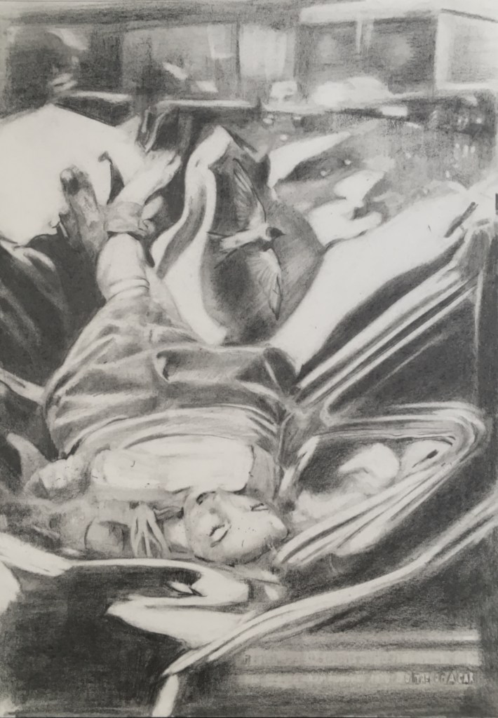 détail, Sarah (je voulais être une chauve-souris), 2023, Graohite sur papier