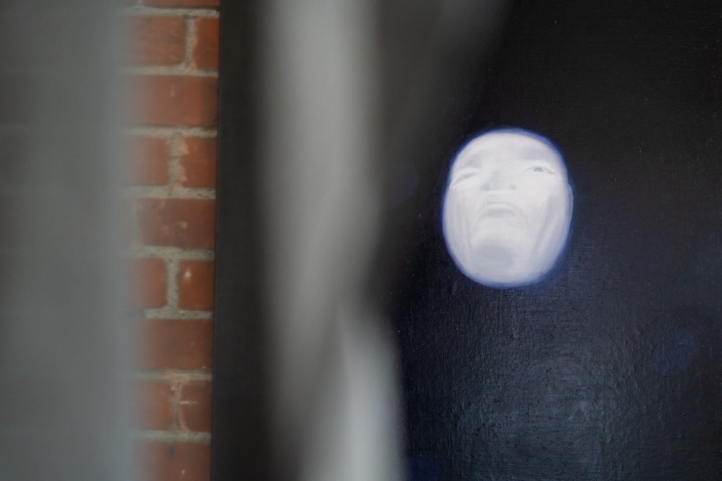 vue d’exposition, crédit photo : Gerard Micheels, Masque.s, 2023, peinture à l’huile sur toile de lin, 160 x 120 cm