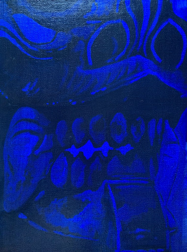masque (bleu), 2024, crayon graphite et huile sur carton toilé, 24 x 18 cm