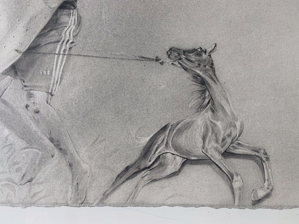 détail, ℳ𝒶𝓈𝓆𝓊𝑒𝓈, 𝑒𝓃𝒻𝒶𝓃𝓉𝓈, 𝓅𝑜𝓊𝓁𝒶𝒾𝓃 𝑒𝓉 𝓁𝓊𝒸𝒾𝑜𝓁𝑒𝓈 , 2024, dessin au crayon graphite sur papier, 56 x 76 cm